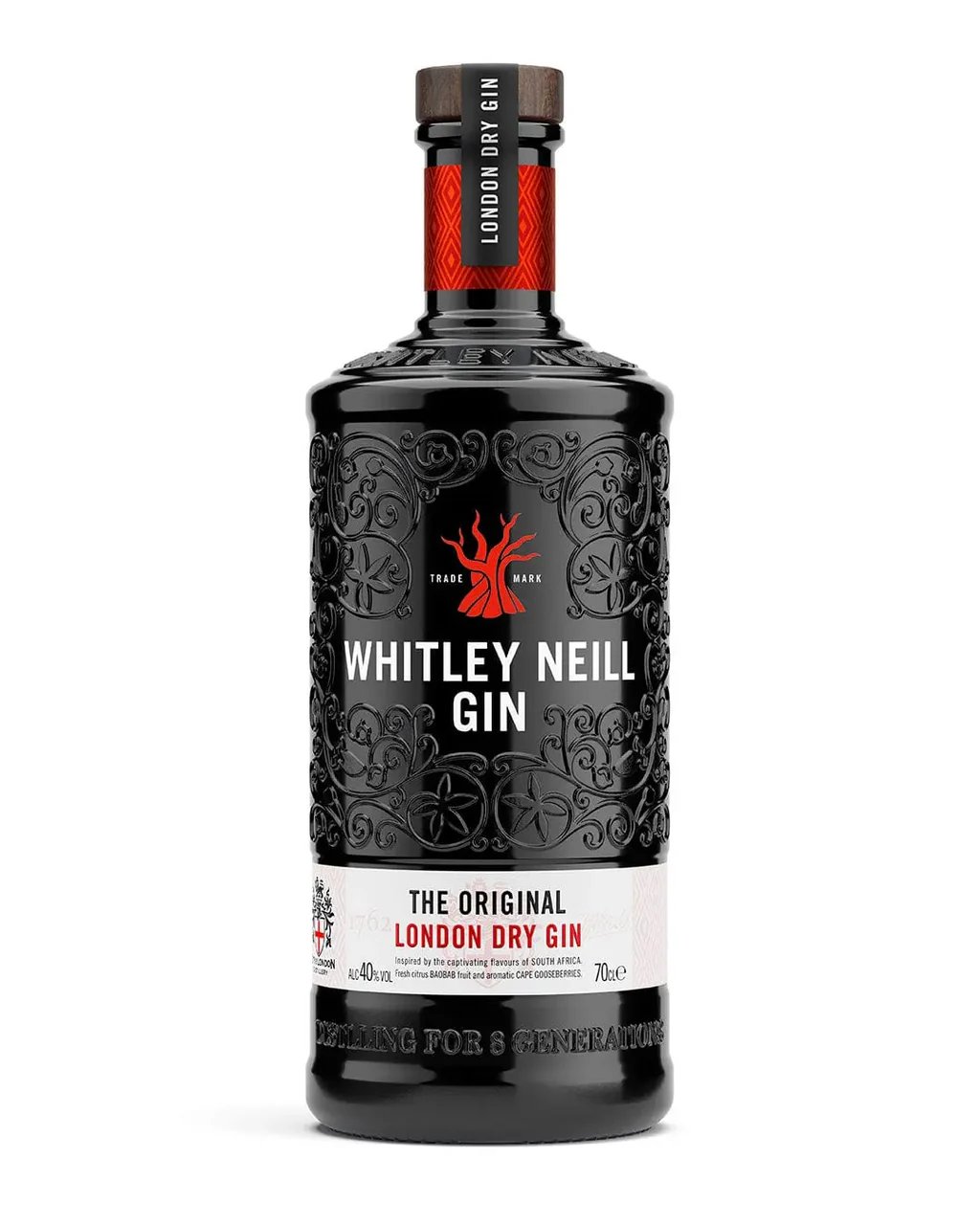 Whitley Neill Dry Gin is slightly softer and much smoother than traditional Gins, with rich notes of juniper and citrus, pot puri and exotic spices. The finish is a long one, with a subtle fade of herbs, cocoa and candied lemon peels, while the nose is both citrus-sweet and peppery, with a distinctive floral aroma.